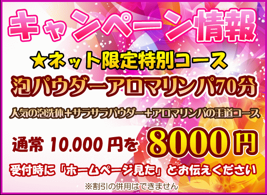 新キャンペーン開始!泡パウダーアロマリンパコースがオールタイム2000円割引!!