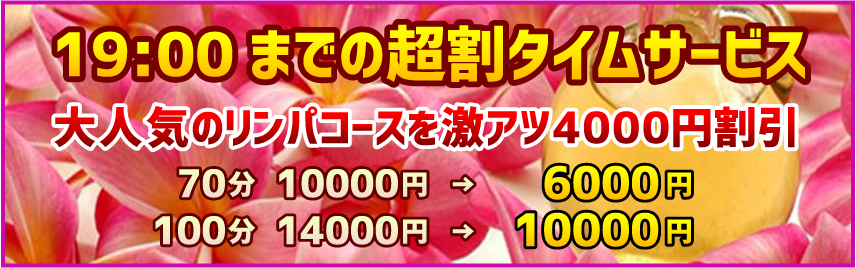 激熱タイムサービス!泡パウダーアロマリンパコース70分or100分が19:00まで4000円割引!!
