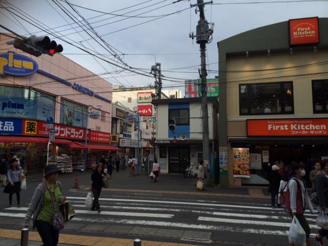 ■手順A 改札をおりて正面の横断歩道を渡り、交番とサンドラッグの間の路地を直進します。 |