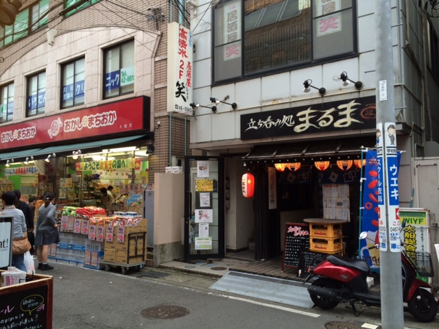 ■手順D すると右手に『立ち飲み処まるま』と『おかしのまちおか』という店が見えますので、そこを左折します。 |